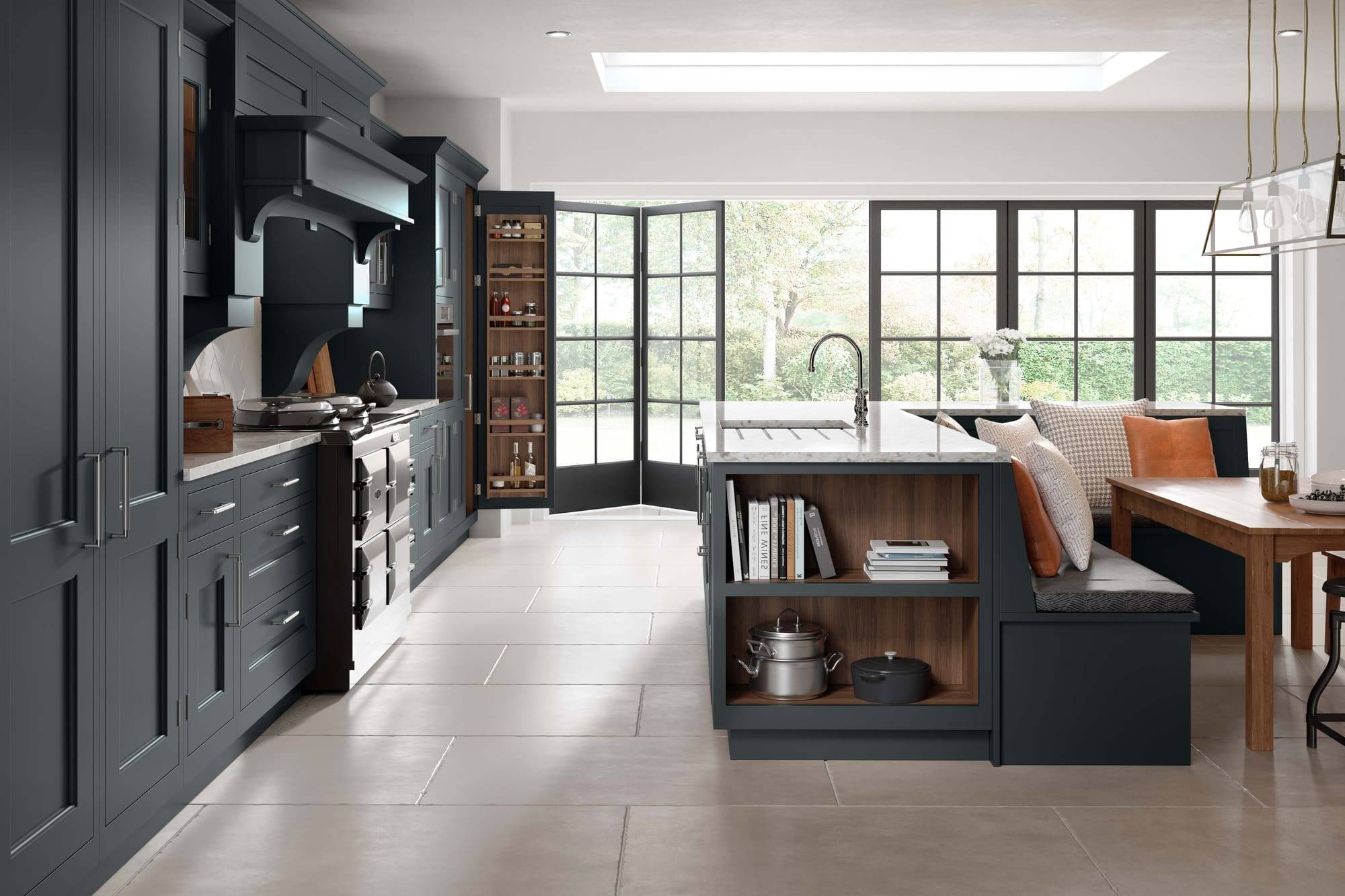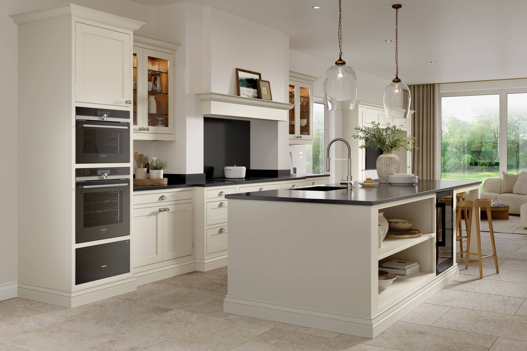 In-frame kitchens are a hallmark of traditional British kitchen design, characterised by their framed door construction. Unlike conventional kitchen cabinets where doors are attached directly to the carcass, in-frame kitchens feature doors that sit within a robust frame, creating a distinctive and refined appearance for your kitchen. This design adds a touch of sophistication with a visually captivating depth, but also provides enhanced structural integrity and longevity; all welcoming characteristics for a stylish, long-lasting kitchen design.